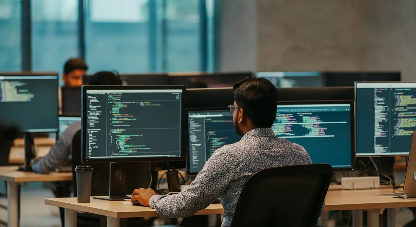 Explore visuals capturing Swizbrigo Tech's dynamic software projects, collaborative workspaces, and impactful job placement events in India.